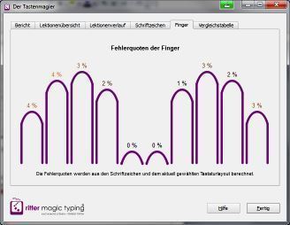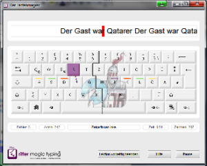 Bei Fehlern erscheinen unsere Assoziationsbilder von ritter magic typing und helfen Dir, Dich zu erinnern, welcher Finger wohin muss. Bei längerem Training solltest Du diese aber abstellen, denn auch dies ist ein „gucken“ auf die Tastatur.